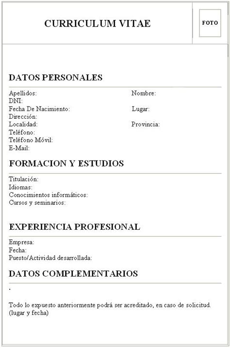 Curriculum Vitae Basico Para Pletar Archives Resume Jobs Template