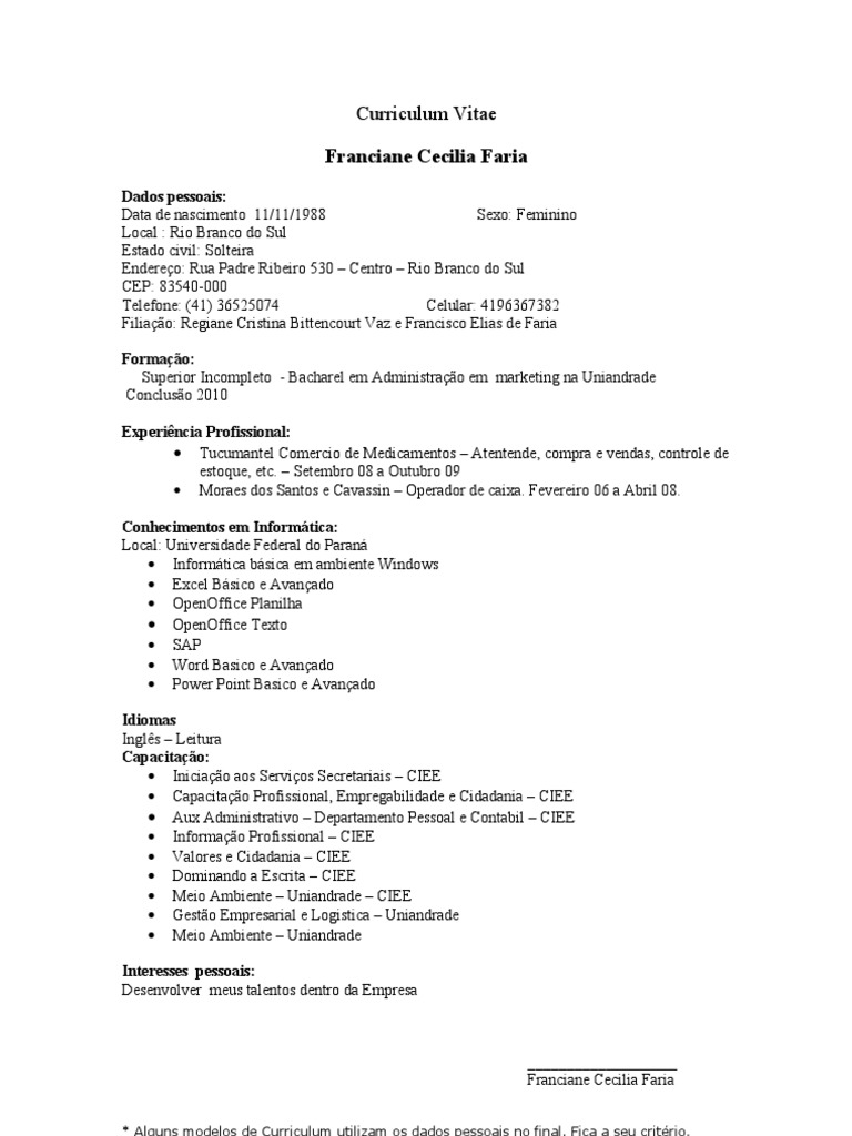 Pornfrr Modelo De Curriculum Vitae Basico