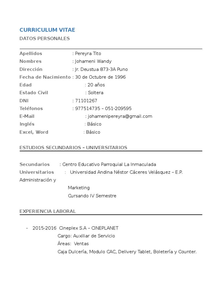 Curriculum vitae basico. Lo que hace destacar a esta plantilla es su diseño minimalista y limpio con colores neutrales para resaltar principalmente el contenido. Basic curriculum vitae example curriculum vitae donald sunter po. Todos se preguntaran que es un curriculum vitae su misma palabra lo dice curriculum vitae es nuestra carrera de vida es nuestra carta de presentación a la hora de adquirir un trabajo es lo que nos va a diferenciar de otras personas que van en busca del mismo puesto de trabajo que nosotros.