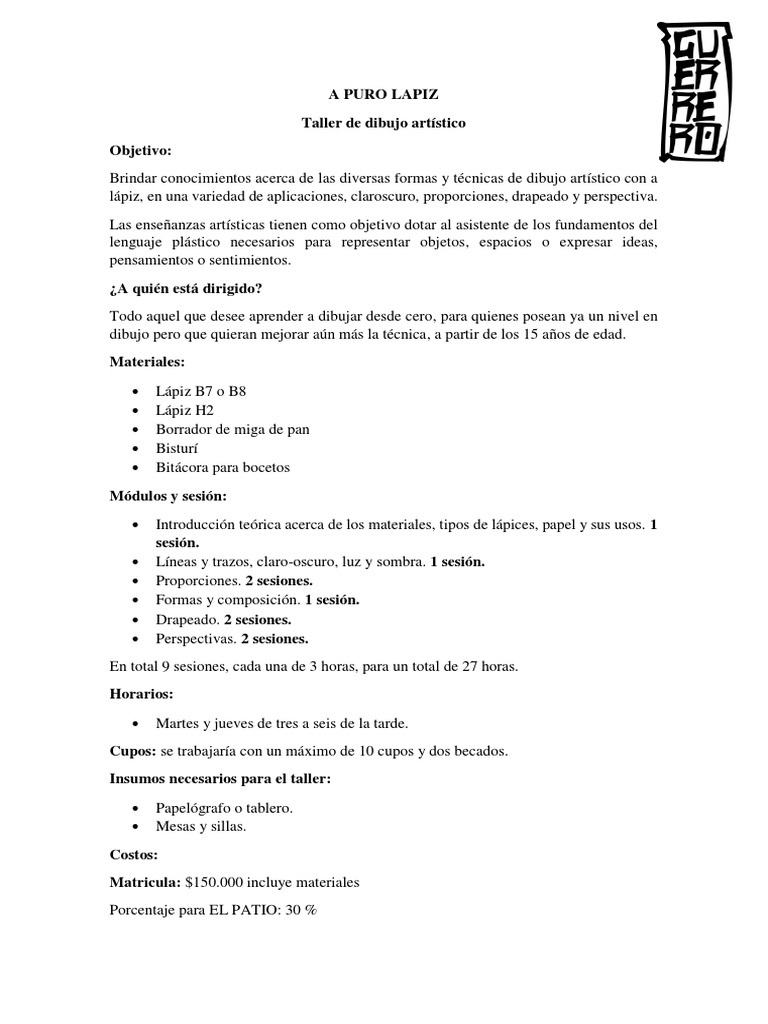 Curso Libre Dibujo Artístico Del 12 De Mayo Al 21 De Julio Del
